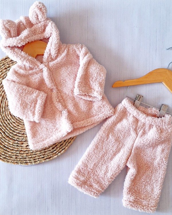 Compuesto por campera y pantalón, confeccionado en tela bien abrigada y ultra suave para brindar la máxima comodidad en los días fríos. La campera es práctica y fácil de colocar, mientras que el pantalón permite libertad de movimiento sin perder abrigo. Disponible en talles del 0 al 2, ideal para acompañar a tu bebé desde recién nacido hasta los 9 meses manteniéndolo siempre calentito y con un look adorable.